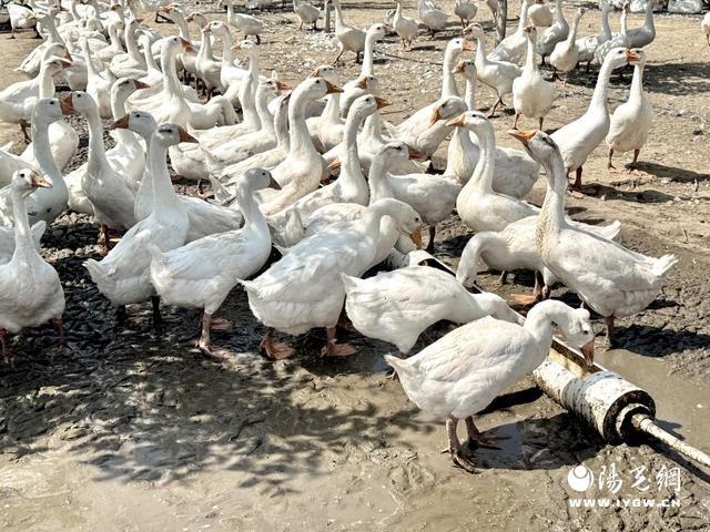 扬州大鹅养殖基地采取“党支部+基地+合作社+农户”模式,对大鹅进行统一育雏、分散养殖、集中回收、统一出售,并以果园地、玉米地、苜蓿地套养扬州鹅的方式进行“循环示范试验”养殖。目前,全镇林下循环养殖大鹅可实现20000只以上,养殖周期约120天左右,存活率达98%以上,带动了周边村民实现“家门口”就业,小鹅雏正逐渐成长为带动群众增收的“致富鹅”。