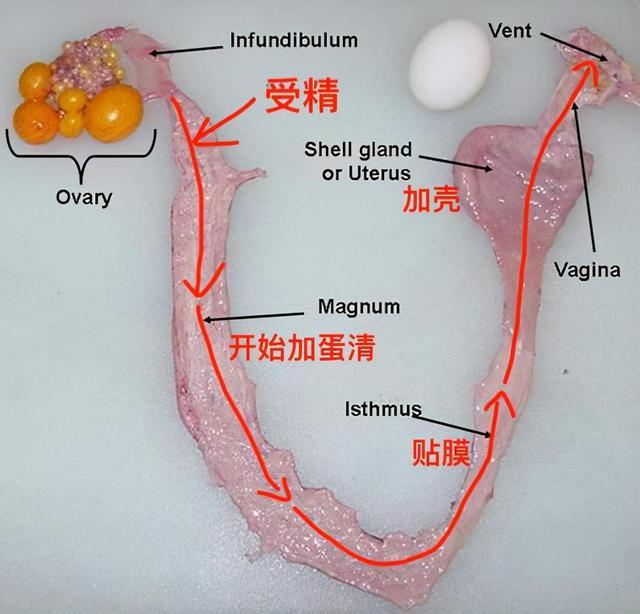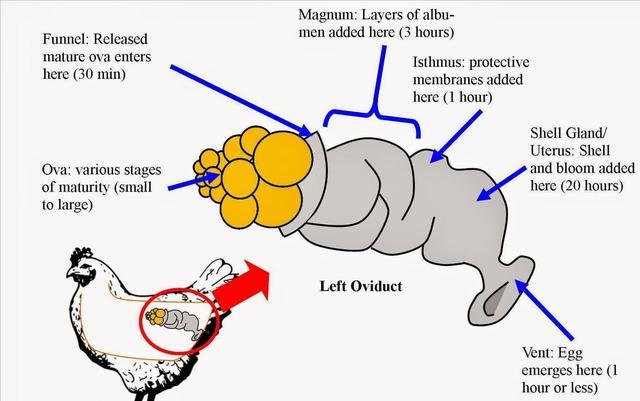 母鸡每天的卵细胞都会经过输卵管通道,如果在这个过程中没有的出现,但依旧不影响母鸡每日排卵产生的鸡蛋,只不过这个鸡蛋没有被受精,而且也不能孵出小鸡而已。文中也提到过蛋黄和蛋白都是卵细胞产生的,而蛋黄和蛋白相结合时还会产生蛋白膜,蛋白膜也就是剥开鸡蛋壳时看见的那层膜,这个膜将蛋黄和蛋白牢牢的包裹在里面,一个完整的鸡蛋也就形成了。