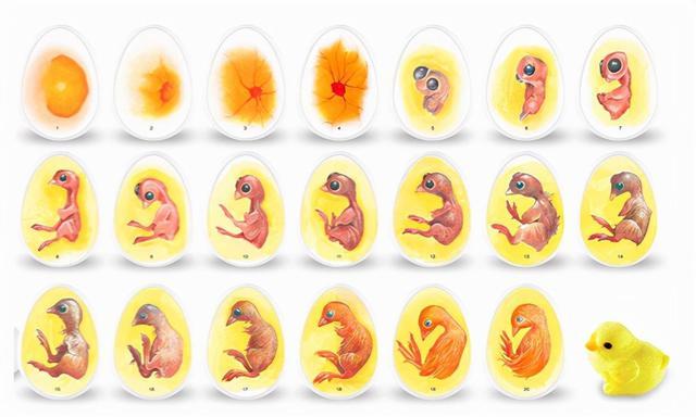 最开始会以透明胚盘的身份出现在蛋黄的表面,然后一步步吸取蛋黄的营养发育成胚胎,最后长出器官、肢体、羽毛然后破壳而出。