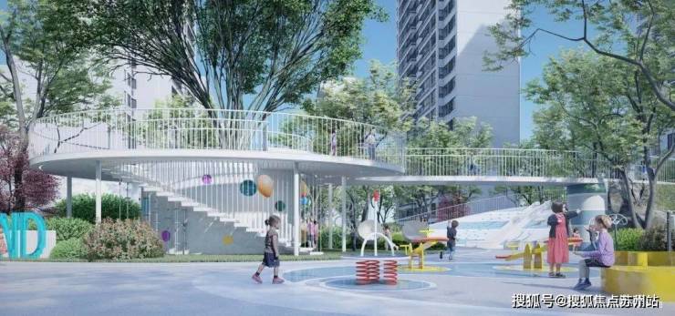 以分龄设计全龄活动场地,增设儿童滑梯、跑道、阳光草坪、景观廊架、摇摇马、婴儿车停放区、廊桥飞虹以及爬爬洞、跷跷板等活动器械,合理布局0-3岁、3-6岁、6岁的分龄活动区和老年活动区,为儿童玩耍和老年看护,多添一份安心。